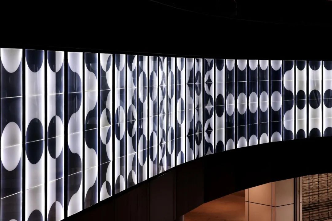 The "Waves of Light" digital artwork just unveiled at the Taipei Dome Park, which officially opened at the end of June, utilizes segmented epaper screen with sound and light effects to display black-and-white moving images, presenting an ever-changing sense of speed and movement.