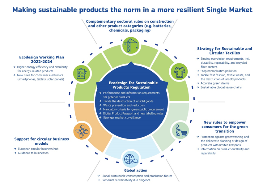 The EU's Eco-design for Sustainable Products Regulation sets mandatory minimum sustainability requirements for core products placed on the market, focusing on durability, reusability and repairability, and demands that product lifespan extension be considered at the source of design.