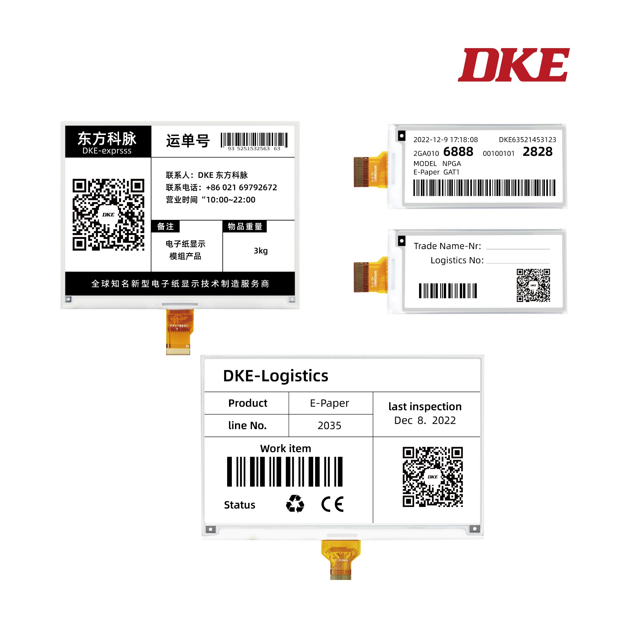 At the Electronica2022 Electronic Components Fair,DKE Oriental,together with its partners,demonstrated how e-paper display modules can be used in smart logistics recyclable packaging labels and sheets,replacing the use of disposable paper labels and significantly reducing packaging and turnover consumables costs and carbon emissions.To help the global logistics industry to reduce consumption,low pollution,low emissions,high efficiency,high efficiency and high efficiency green transformation.