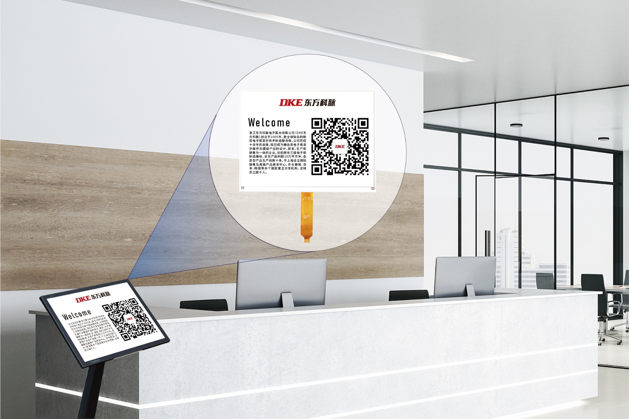 DKE east branch vein e-paper displays in the field of green wisdom office for all kinds of office scenario,are based on black and white,black and white and red,black and white and yellow electronic paper display module products,through the wireless transmission technology to realize the PC connected to the clouds,in order to obtain information transmitted to the terminal products on display,strong practicability,reduce the manpower cost,environmental protection and energy saving,high-end atmosphere,It has great commercial value.