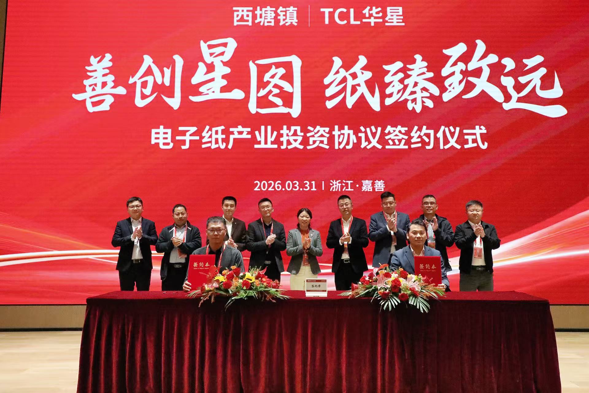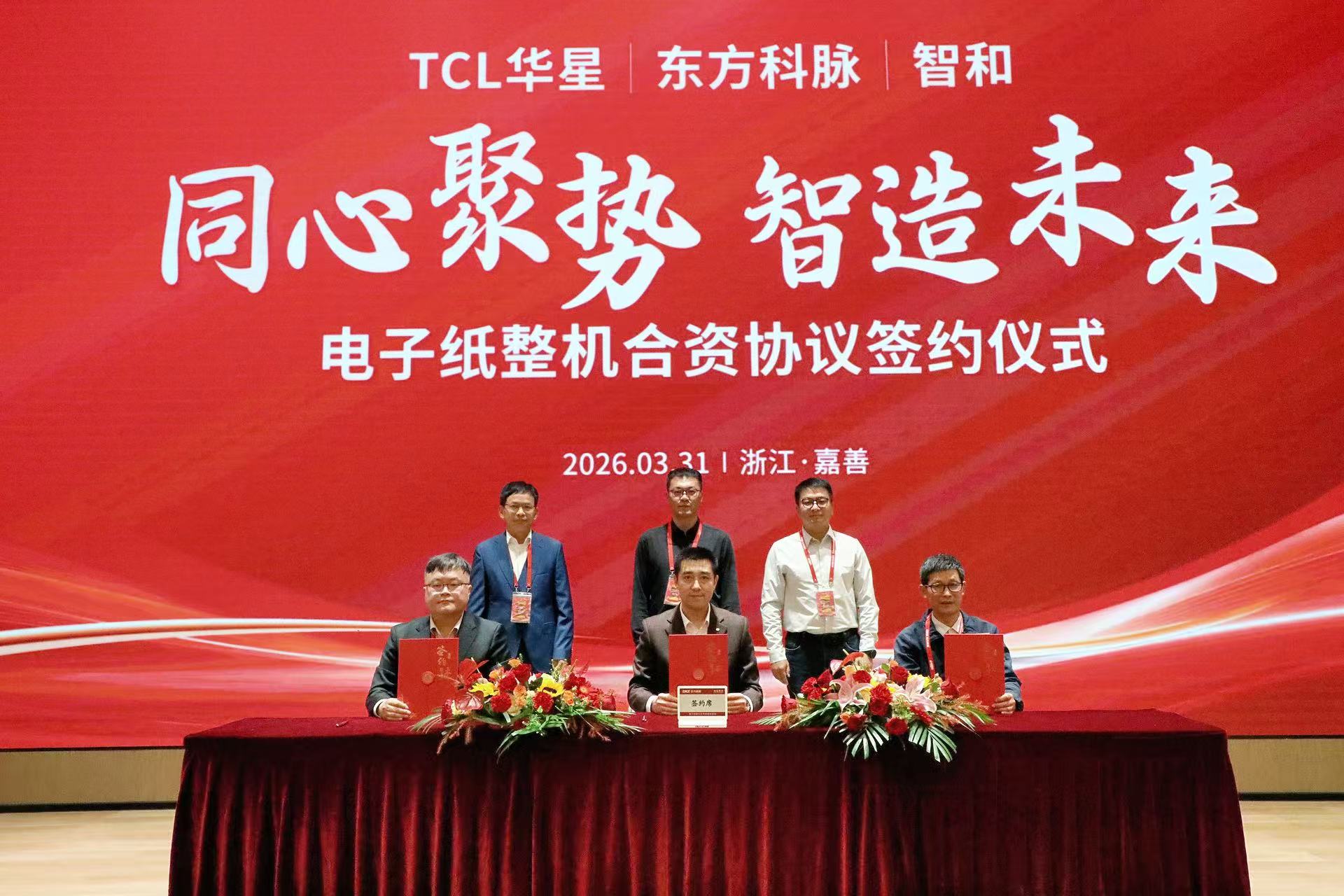 TCL CSOT, DKE, and Zhihé Technology officially signed a joint venture agreement for an e-paper device project in Jiashan. The partnership integrates technology, manufacturing, and market resources to accelerate large-scale adoption of e-paper solutions and promote sustainable display applications.