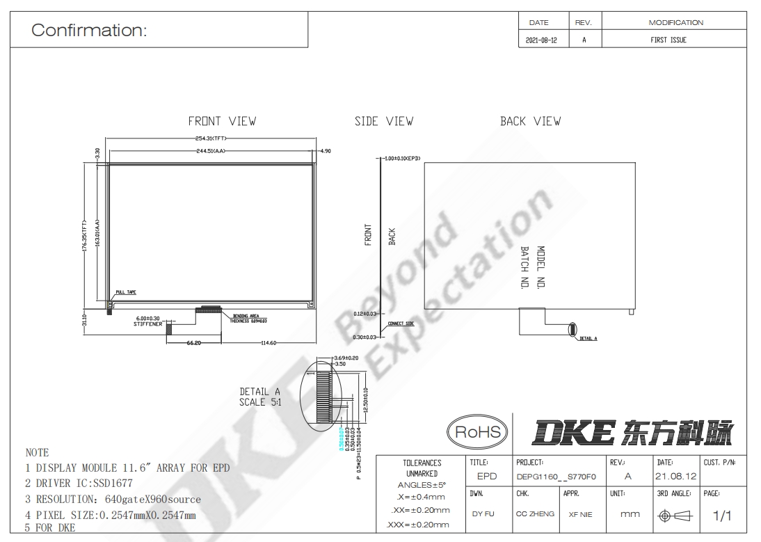 DKE 11.6 Inch Black White E-paper Display