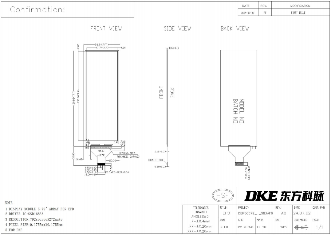 Outline Dimension(mm):56.94(H)x150.92(V)×1.0(D)