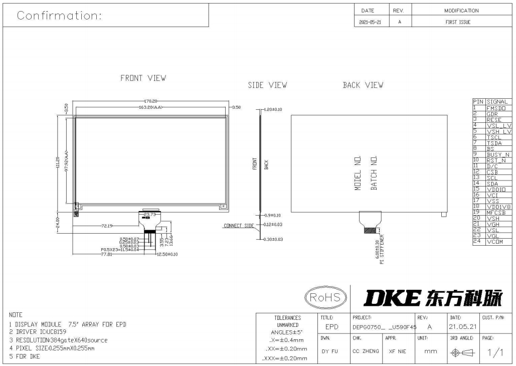 DKE 7.5 Inch Black White E-paper Display